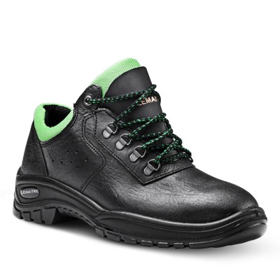 Crafted from durable 1.9mm – 2.1mm Buffalo Print leather with a green mesh collar and padded tongue, it ensures comfort and breathability. Featuring a steel toe cap for impact protection and a robust Apollo sole made from Double Density PU/PU, this shoe offers reliability in various conditions.