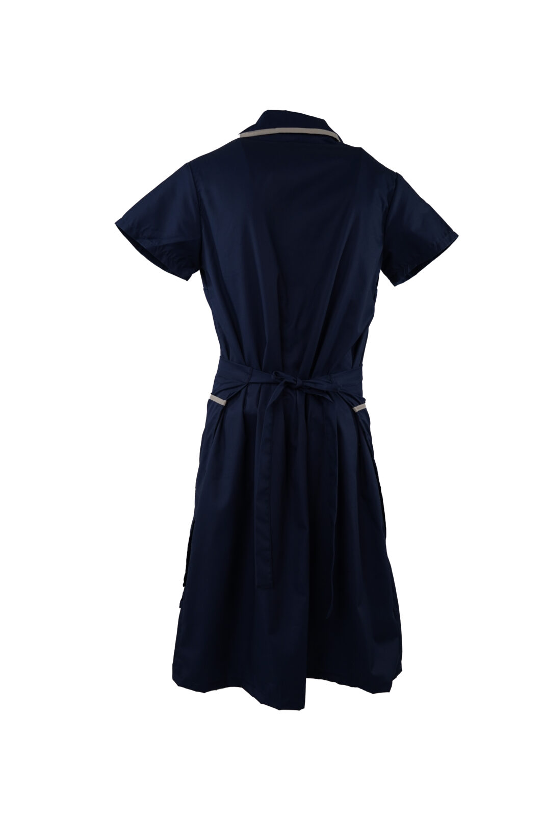 • Rounded collar with contrast piping