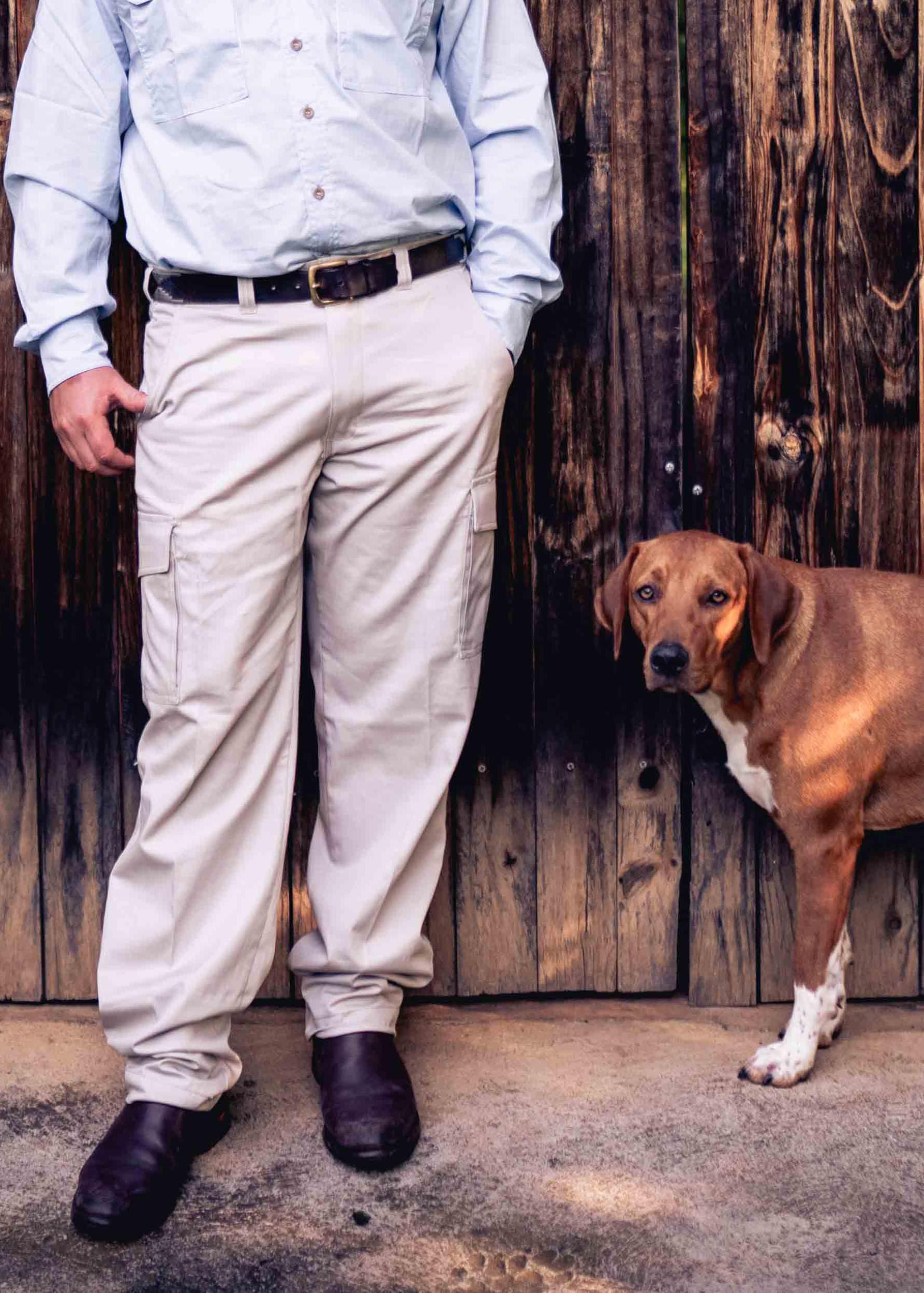 Trousers that work as hard as you do. The Trader Trouser is a men’s cargo trouser with two side, two cargo, and two back pockets with velcro-closure flaps. Manufactured from a tough 240g cotton chino twill fabric